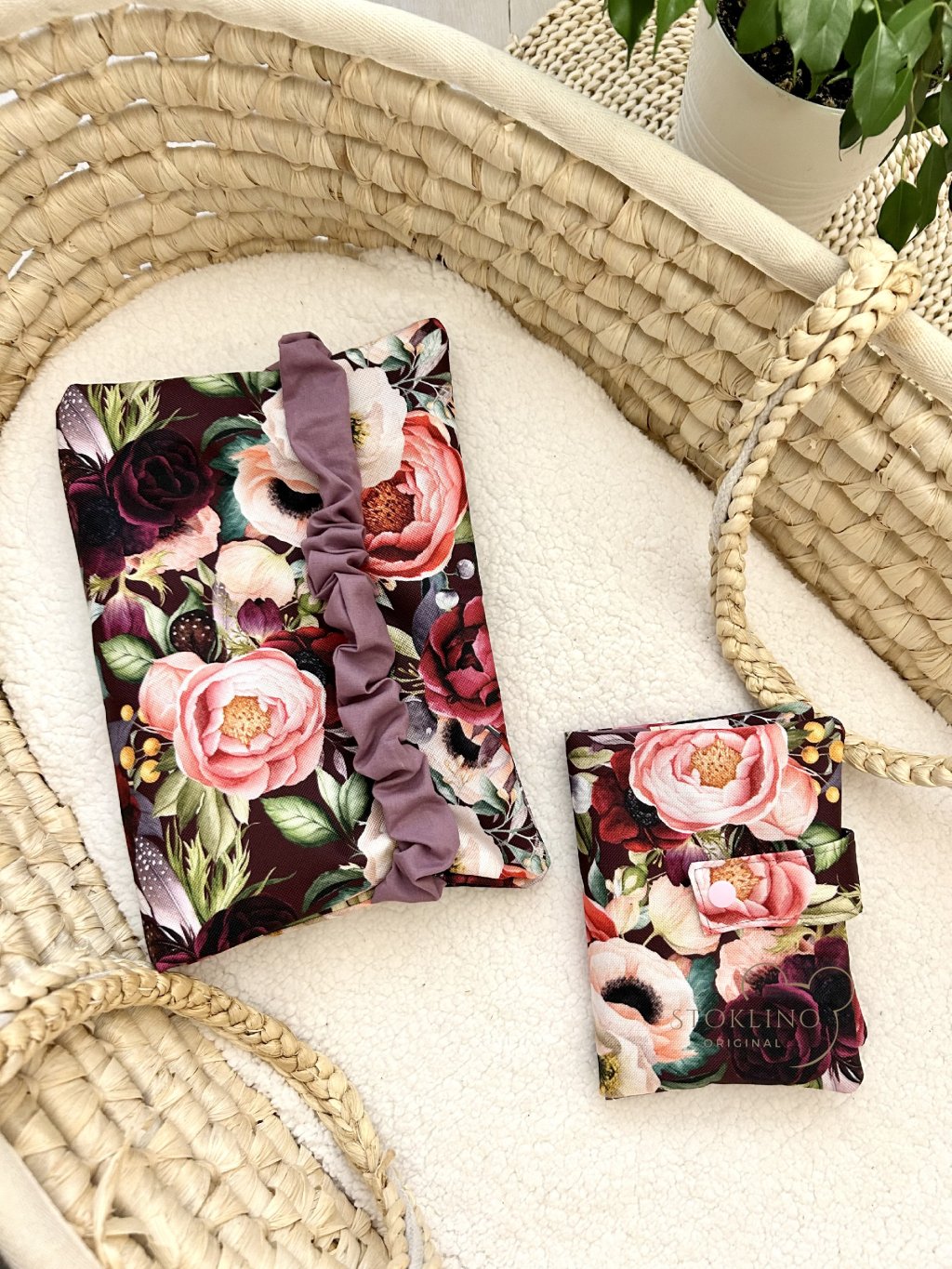 Obal na očkovací průkaz ve velikosti A6 je šitý ve sladěných odstínech. Zapínání očkovacího průkazu je řešeno drukem.