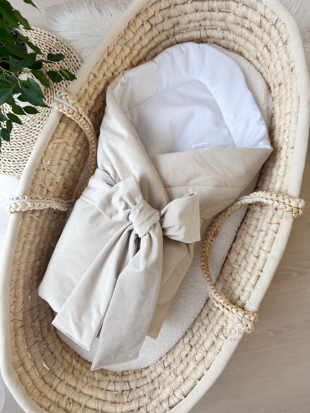 Odstín pískového sametového velvetu lze změnit! Odstín, ve kterém si přejete výbavičku nebo jednotlivé výrobky ušít napište, prosím, do poznámky v košíku v posledním kroku objednávky. (např. krémový velvet V3). Pokud do poznámky odstín velvetu nenapíšete, ušiji Vám výbavičku podle úvodní fotky, tedy v kombinaci s pískovým velvetem V4.