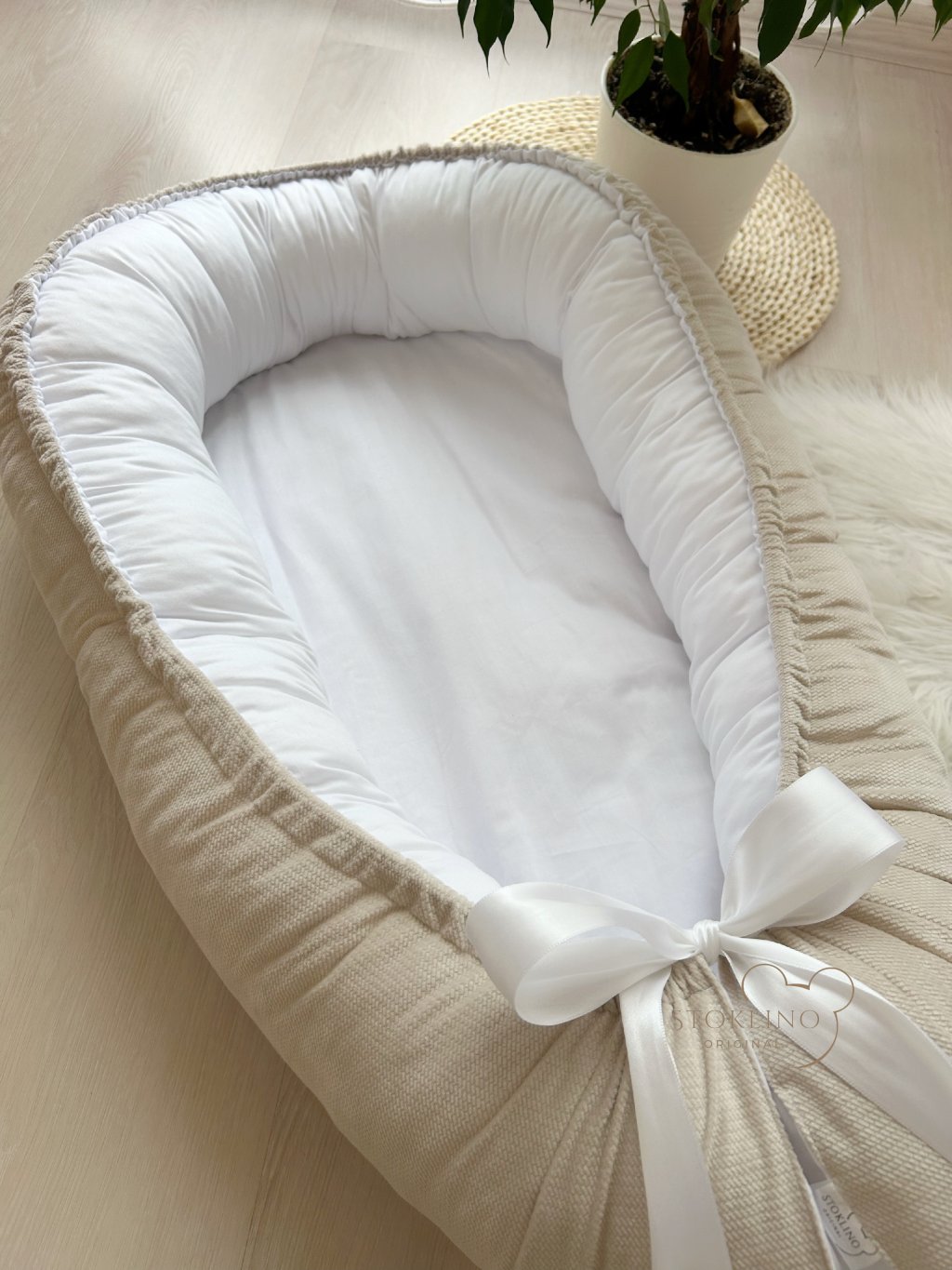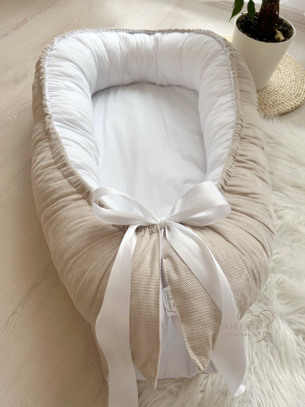 Velikost hnízdečka můžete regulovat stahováním stuhy, případně lze i celé rozvázat. Hnízdečko je oboustranné.