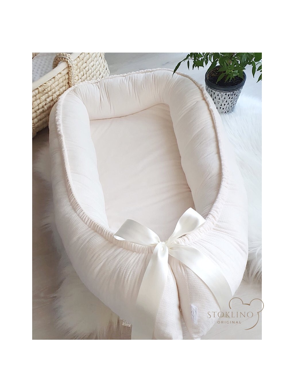 Velikost hnízdečka můžete regulovat stahováním stuhy, případně lze i celé rozvázat. Hnízdečko je oboustranné.